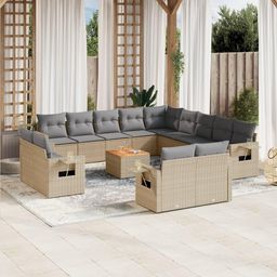 Salon de jardin avec coussins 14 pcs beige resine tressee