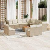 Salon de jardin avec coussins 14 pcs beige resine tressee