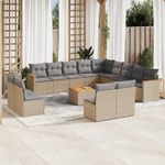 Salon de jardin avec coussins 14 pcs beige resine tressee