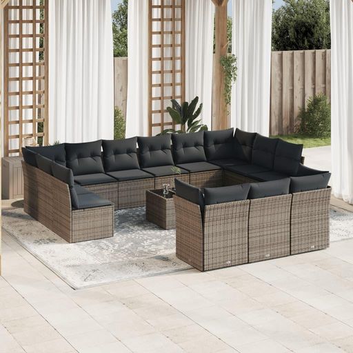 Salon de jardin avec coussins 14 pcs gris resine tressee