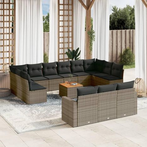 Salon de jardin avec coussins 14 pcs gris resine tressee