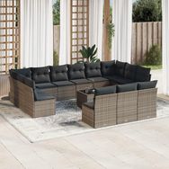 Salon de jardin avec coussins 14 pcs gris resine tressee