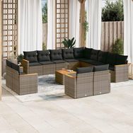 Salon de jardin avec coussins 14 pcs gris resine tressee