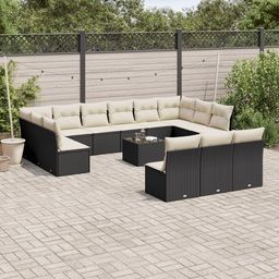 Salon de jardin avec coussins 14 pcs noir resine tressee