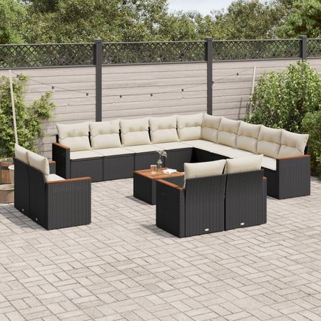 Salon de jardin avec coussins 14 pcs noir resine tressee