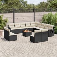 Salon de jardin avec coussins 14 pcs noir resine tressee