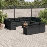 Salon de jardin avec coussins 14 pcs noir resine tressee