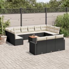Salon de jardin avec coussins 14 pcs noir resine tressee