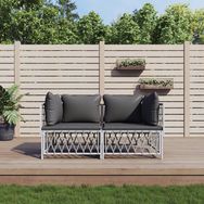 Salon de jardin avec coussins 2 pcs blanc acier