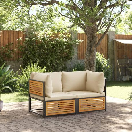 Salon de jardin avec coussins 2 pcs bois massif acacia