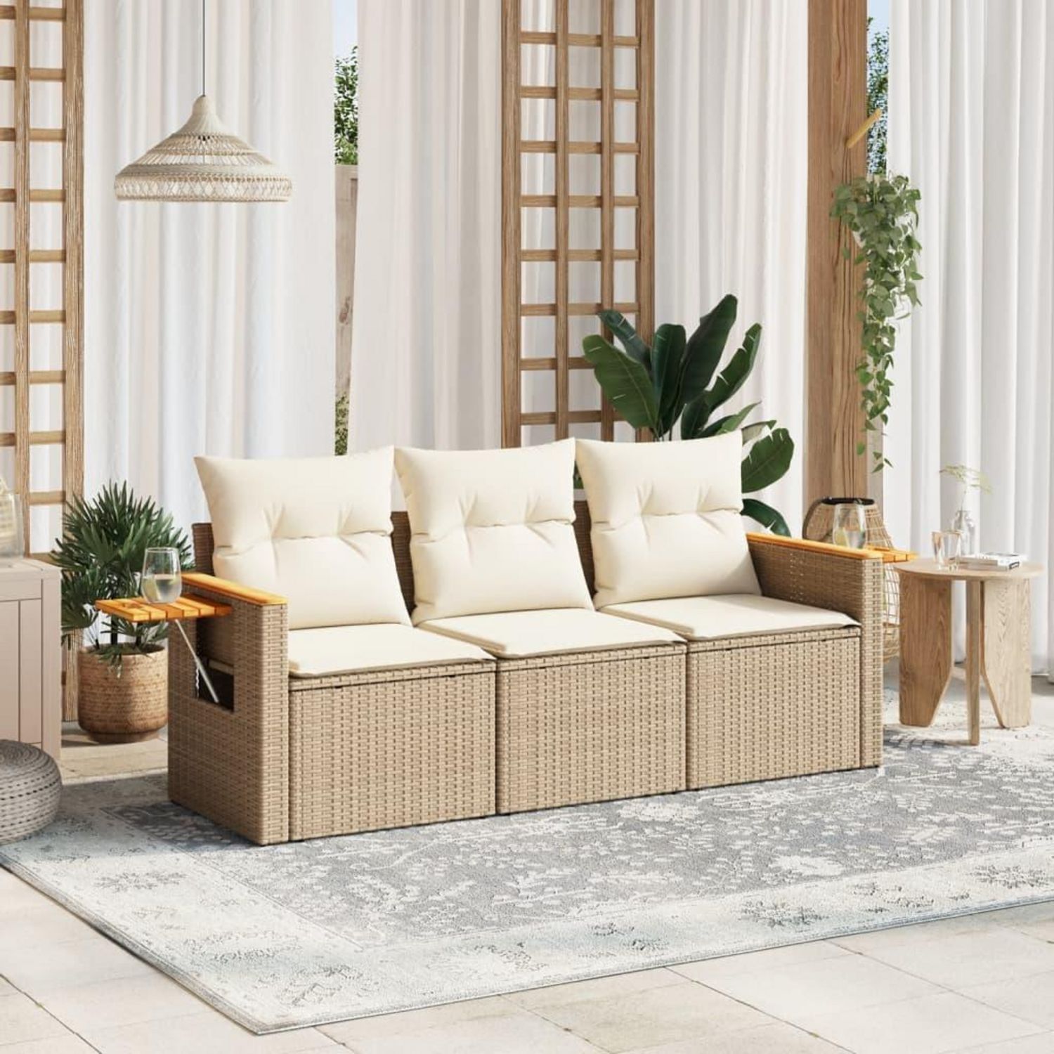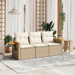 Salon de jardin avec coussins 3 pcs beige resine tressee