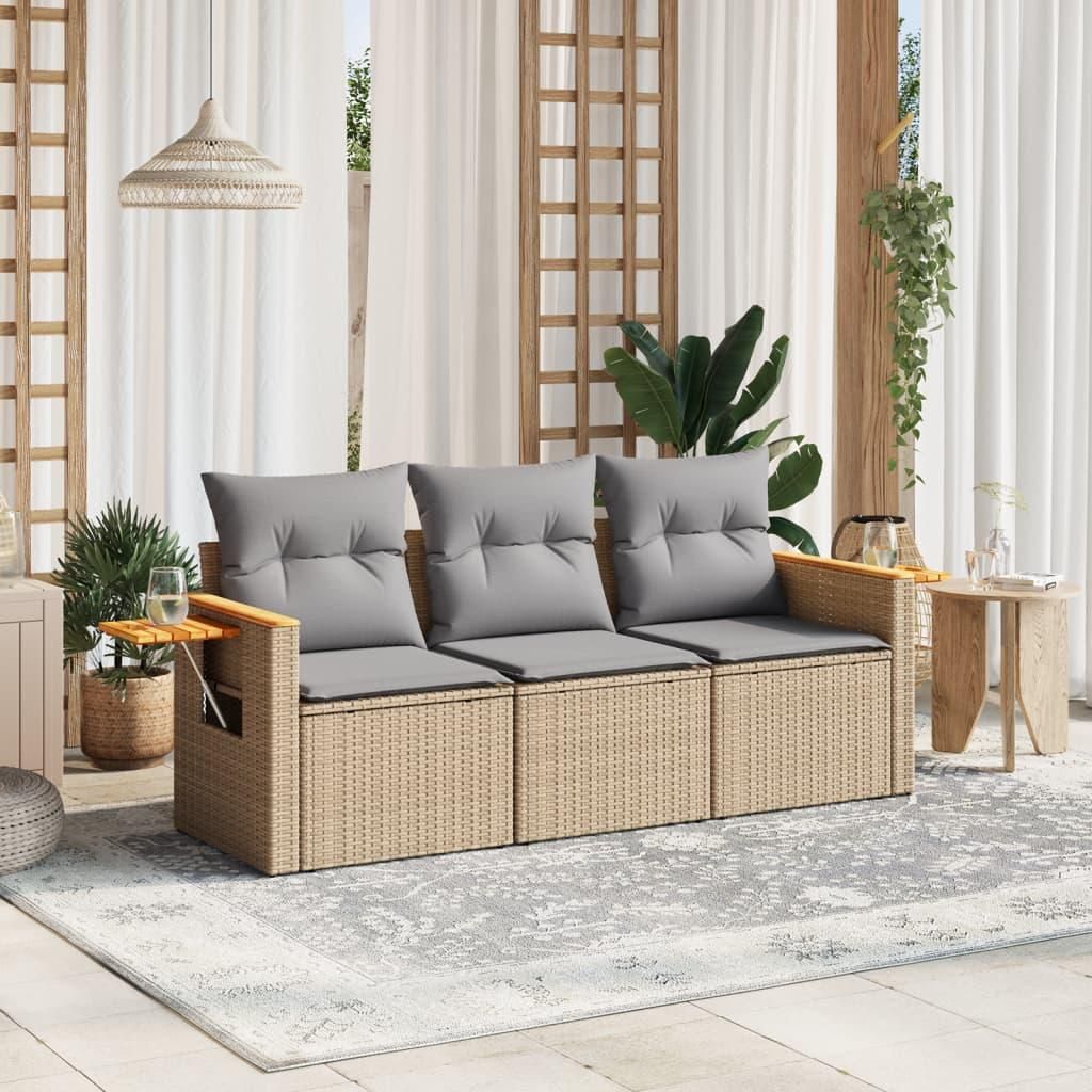 Salon de jardin avec coussins 3 pcs beige resine tressee