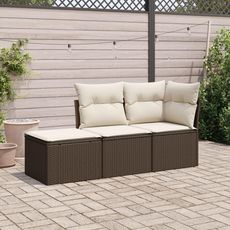 Salon de jardin avec coussins 3 pcs marron resine tressee