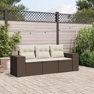 Salon de jardin avec coussins 3 pcs marron resine tressee