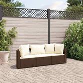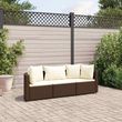 Salon de jardin avec coussins 3 pcs marron resine tressee