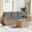 Salon de jardin avec coussins 4 pcs beige resine tressee