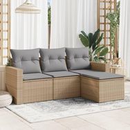 Salon de jardin avec coussins 4 pcs beige resine tressee