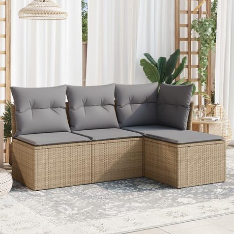 Salon de jardin avec coussins 4 pcs beige resine tressee