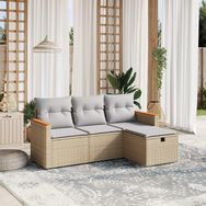 Salon de jardin avec coussins 4pcs melange beige resine tressee