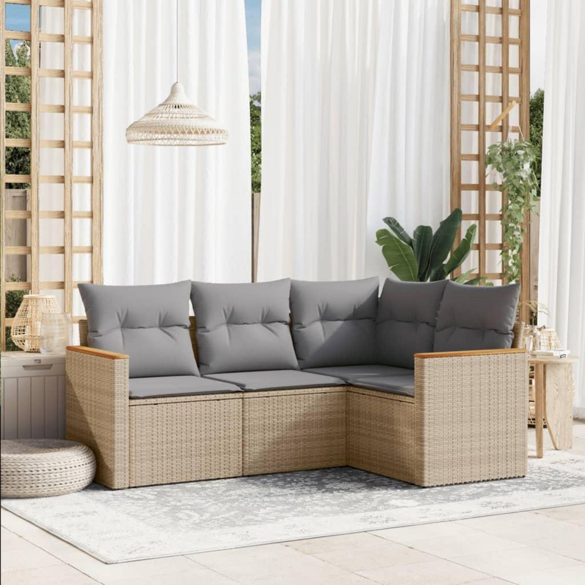 Salon de jardin avec coussins 4pcs melange beige resine tressee