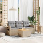 Salon de jardin avec coussins 4pcs melange beige resine tressee
