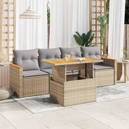 Salon de jardin avec coussins 5 pcs beige resine tressee acacia