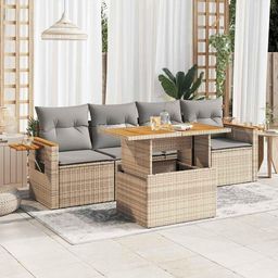 Salon de jardin avec coussins 5 pcs beige resine tressee acacia