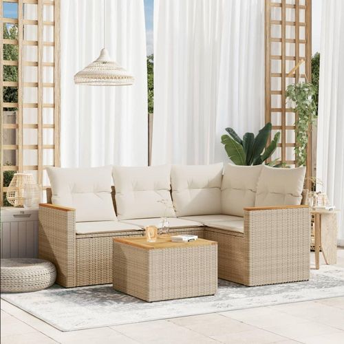 Salon de jardin avec coussins 5 pcs beige resine tressee