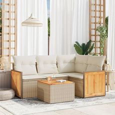 Salon de jardin avec coussins 5 pcs beige resine tressee
