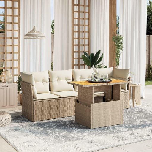 Salon de jardin avec coussins 5 pcs beige resine tressee