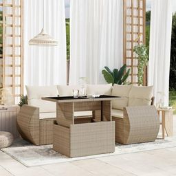 Salon de jardin avec coussins 5 pcs beige resine tressee