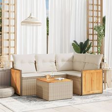 Salon de jardin avec coussins 5 pcs beige resine tressee
