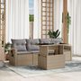 Salon de jardin avec coussins 5 pcs beige resine tressee