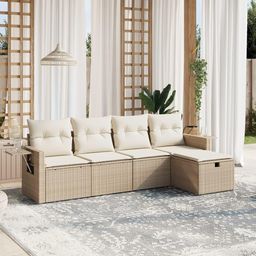 Salon de jardin avec coussins 5 pcs beige resine tressee