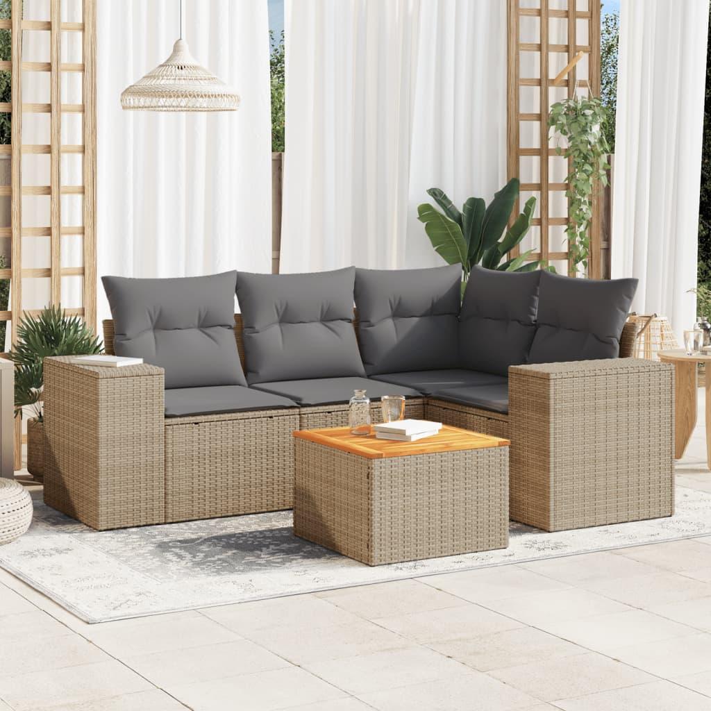 Salon de jardin avec coussins 5 pcs beige resine tressee