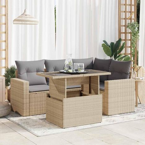 Salon de jardin avec coussins 5 pcs beige resine tressee