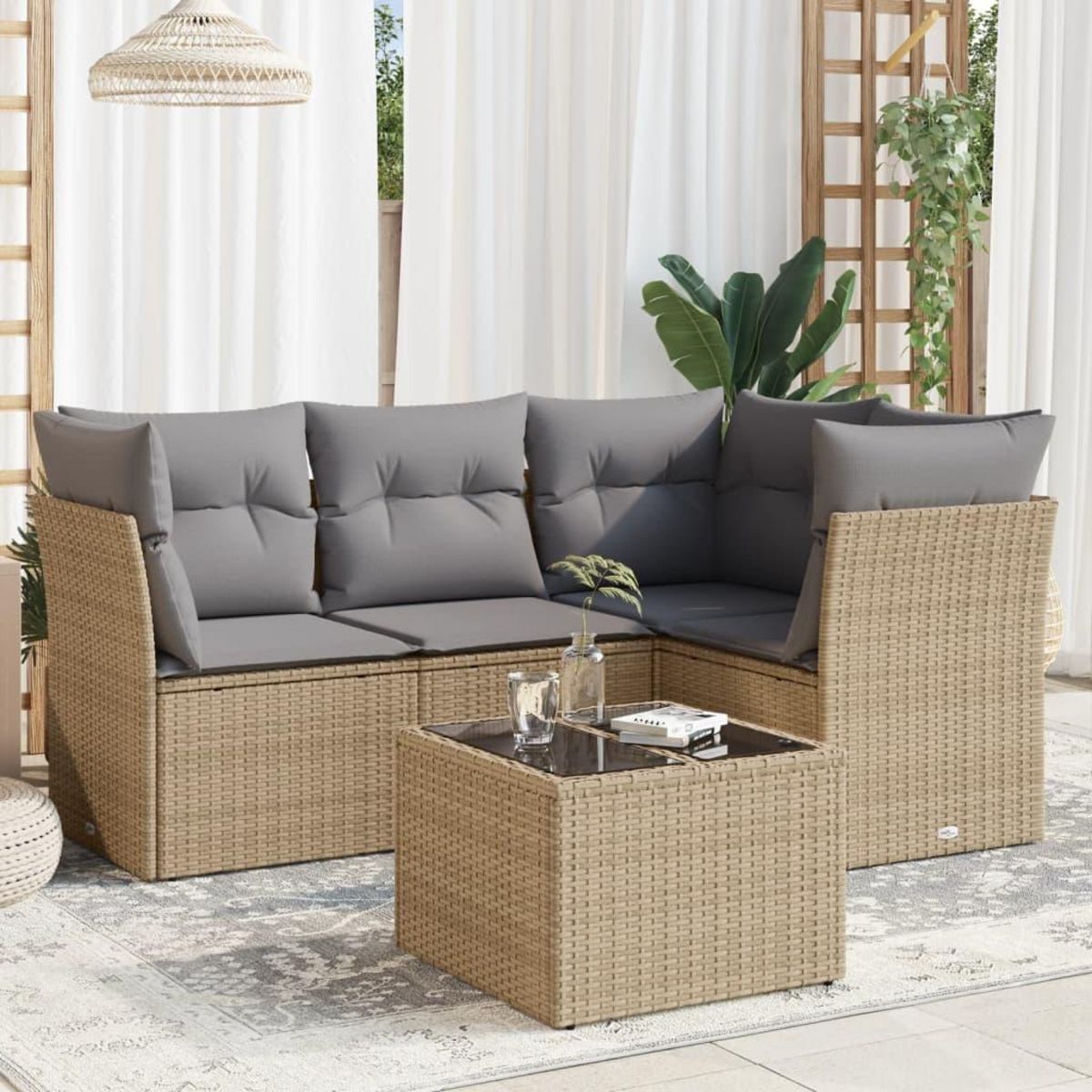 Salon de jardin avec coussins 5 pcs beige resine tressee