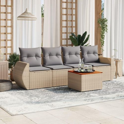 Salon de jardin avec coussins 5 pcs beige resine tressee