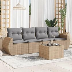 Salon de jardin avec coussins 5 pcs beige resine tressee