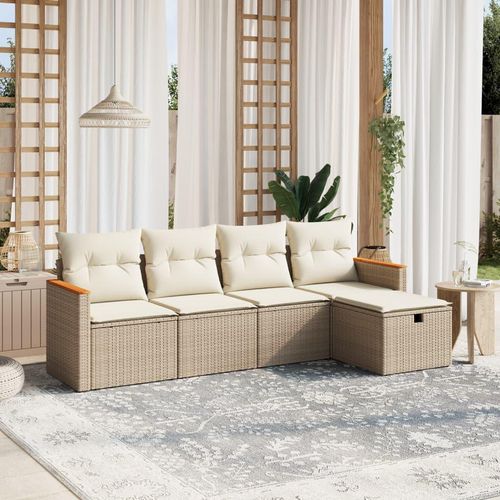 Salon de jardin avec coussins 5 pcs beige resine tressee