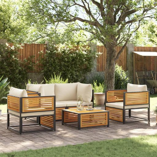 Salon de jardin avec coussins 5 pcs Bois d'acacia solide