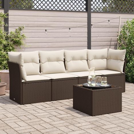 Salon de jardin avec coussins 5 pcs marron resine tressee