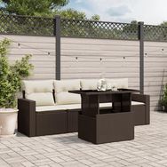 Salon de jardin avec coussins 5 pcs marron resine tressee