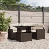 Salon de jardin avec coussins 5 pcs marron resine tressee