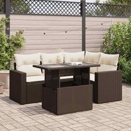 Salon de jardin avec coussins 5 pcs marron resine tressee
