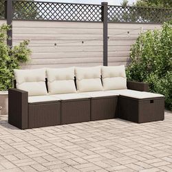 Salon de jardin avec coussins 5 pcs marron resine tressee