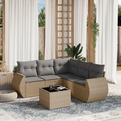 Salon de jardin avec coussins 6 pcs beige resine tressee