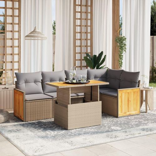 Salon de jardin avec coussins 6 pcs beige resine tressee
