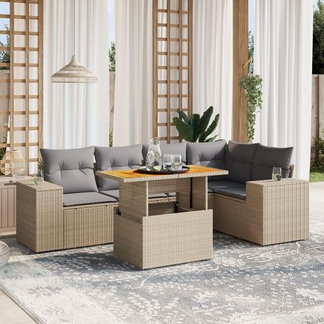 Salon de jardin avec coussins 6 pcs beige resine tressee