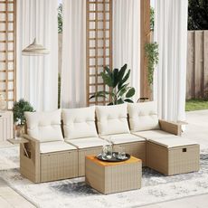 Salon de jardin avec coussins 6 pcs beige resine tressee